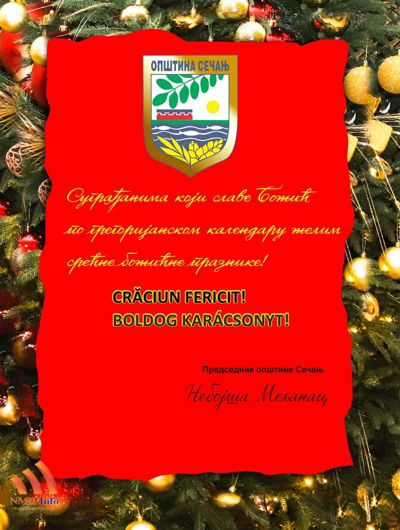 Povodom predstojećeg velikog hrišćanskog praznika, predsednik opštine Sečanj Nebojša Meljanac uputio je čestitku svim sugrađanima koji Božić slave po gregorijanskom kalendaru.