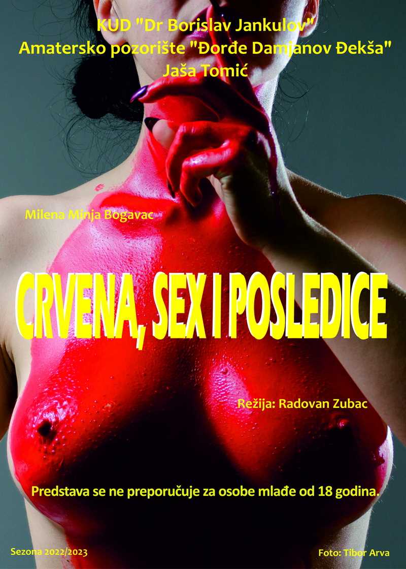 U petak 18. novembra sa početkom od 19:30 na maloj sceni Doma kulture u Jaši Tomiću zakazana je premijera predstave CRVENA, SEX I POSLEDICE po tekstu Milene Bogavac, u režiji Radovana Zupca, a u izvođenju Amaterskog pozorišta Đorđe Damjanov Đekša“. U predstavi igraju: Danka Peka, Marija Blanuša i Aleksandra Radivoj u alternaciji Radovan Zubac. Pored premijere zakazana je i prva repriza za 19. novembar takođe u 19:30.