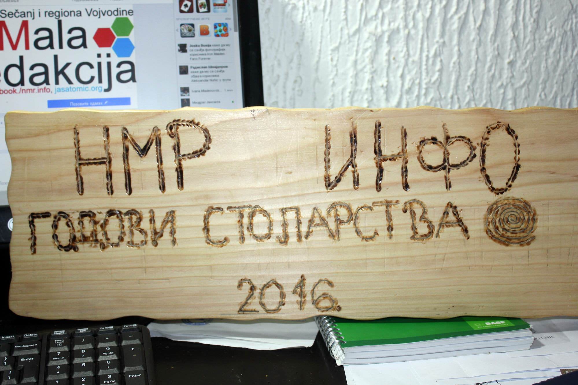 Unikatna tabla sa imenom naše redakcije nastala je na projektu Godovi stolarstva koju je pokrenulo udruženje Inicijativa za ruralni razvoj – Centar u saradnji, a u saradnji sa osnovcima iz osnovne škole „Stevan Aleksić“.