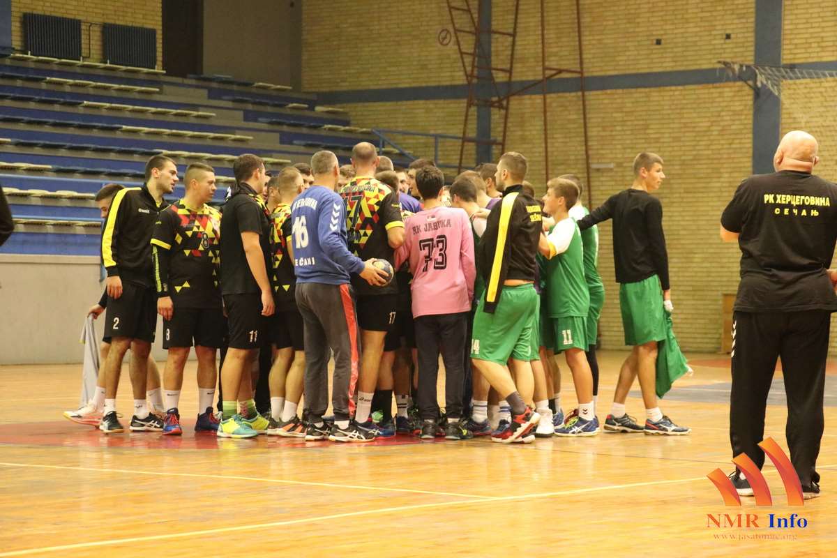 Ugostili su sečanjci u trećem kolu PRLS ekipu Jabuke iz istoimenog mesta. Pre početka susreta Hercegovina je bila favorit. Mladi i neiskusni gosti su bili konkurentni sečanjcima samo u prvih petnaest minuta meča. U tom periodu domaći su igrali loše u odbrani pa je stručni štab Hercegovine zatražio minut odmora. Od tog momenta odbrana domaćih funkcioniše odlično a sa nekoliko intervencija na golu Lisov daje vetar u leđa svom timu. Od dvadesetog minuta trener Vučković na parket šalje Aćimovića, Spahića, Vučkovića i Miladinova a na poziciji vođe napada umesto standardnog Nikolića igra Meljanac te je na poluvremenu 18:11 za Hercegovinu.