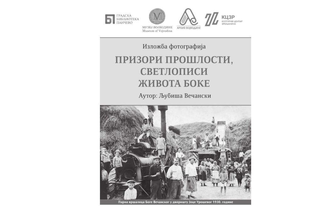 Izložba fotografija “Prizori prošlosti, svetlopisi života Boke” biće otvorena u četvrtak, 31. oktobra u 19 časova u Kulturnom centru Zrenjanin. Izložba sadrži fotografija, iz bogate kolekcije autora Ljubiše Večanskog, koje posetiocima pokazuju život meštana Boke (sela koje se nalazi u srednjem delu Banata na levoj obali reke Tamiš, pored rumunske granice) i predstavljaju svojevrsno putovanje kroz vreme.