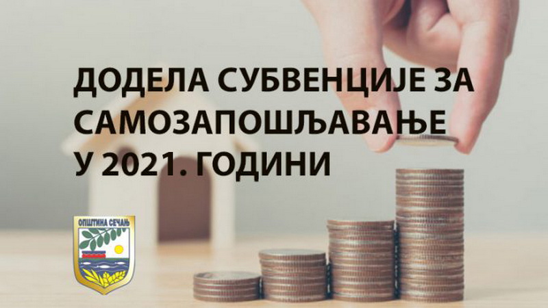 Presednik opštine Sečanj, dana 19.05.2021. godine, donosi odluku i raspisuje javni poziv nezaposlenima za dodelu subvencije za samozapošljavanje u 2021. godini – 2. Deo.