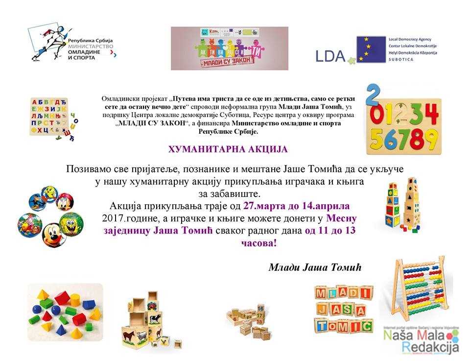 Почела хуманитарна акција прикупљања играчака и књига за децу из забавишта. Ово је још једна акција неформалне групе “Млади Јаша Томић“
