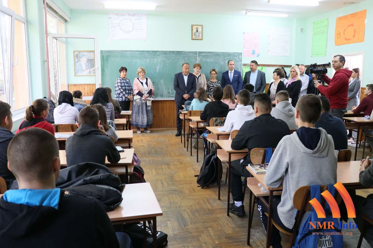 Ministra prosvete, nauke i tehnološkog razvoja Republike Srbije Mladena Šarčevića i njegove saradnike dočekali su Predrag Rađenović sa svojim saradnicima, Zorica Novaković direktorica, prosvetni radnici i učenici srednje škole „Vuk Karadžić“.