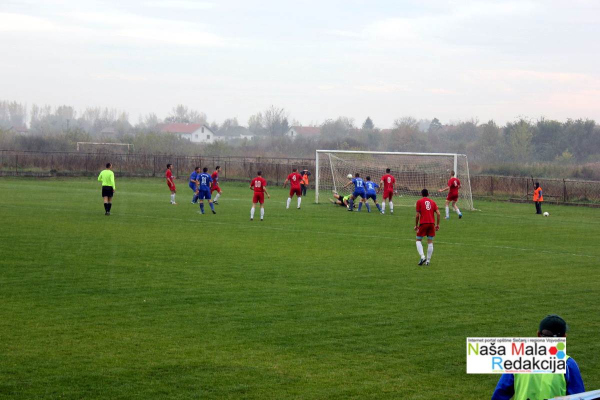 Na dobro pripremljenom terenu, ali po kiši odigrana je veoma dobra i neizvesna utakmica do samog kraja. Siloviti napadi ekipe Radničkog od prvog minuta utakmice. Ređale su se propuštene šanse i kako to obično biva, sledi kazna. U 23. minutu igre iz kornera Stoijlković Aleksandar postiže gol za gostujuću ekipu Banat Bagljaša. To je i rezultat prvog poluvremena.