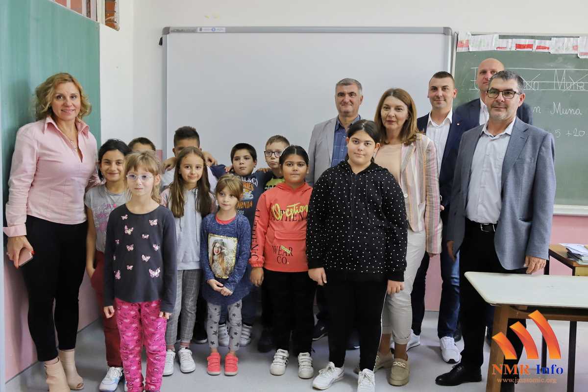 Atanase Danijel Bala konzula Rumunije u Vršcu, Danijela Magdu predsednika Nacionalnog saveta rumunske nacionalne manjine i Danijelu Radu menedžerku projekta dočekali su direktorka osnovne škole Brankica Todorović, Darko Vukoje član Opštinskog veća i Deni Besu ispred lokalne samouprave.