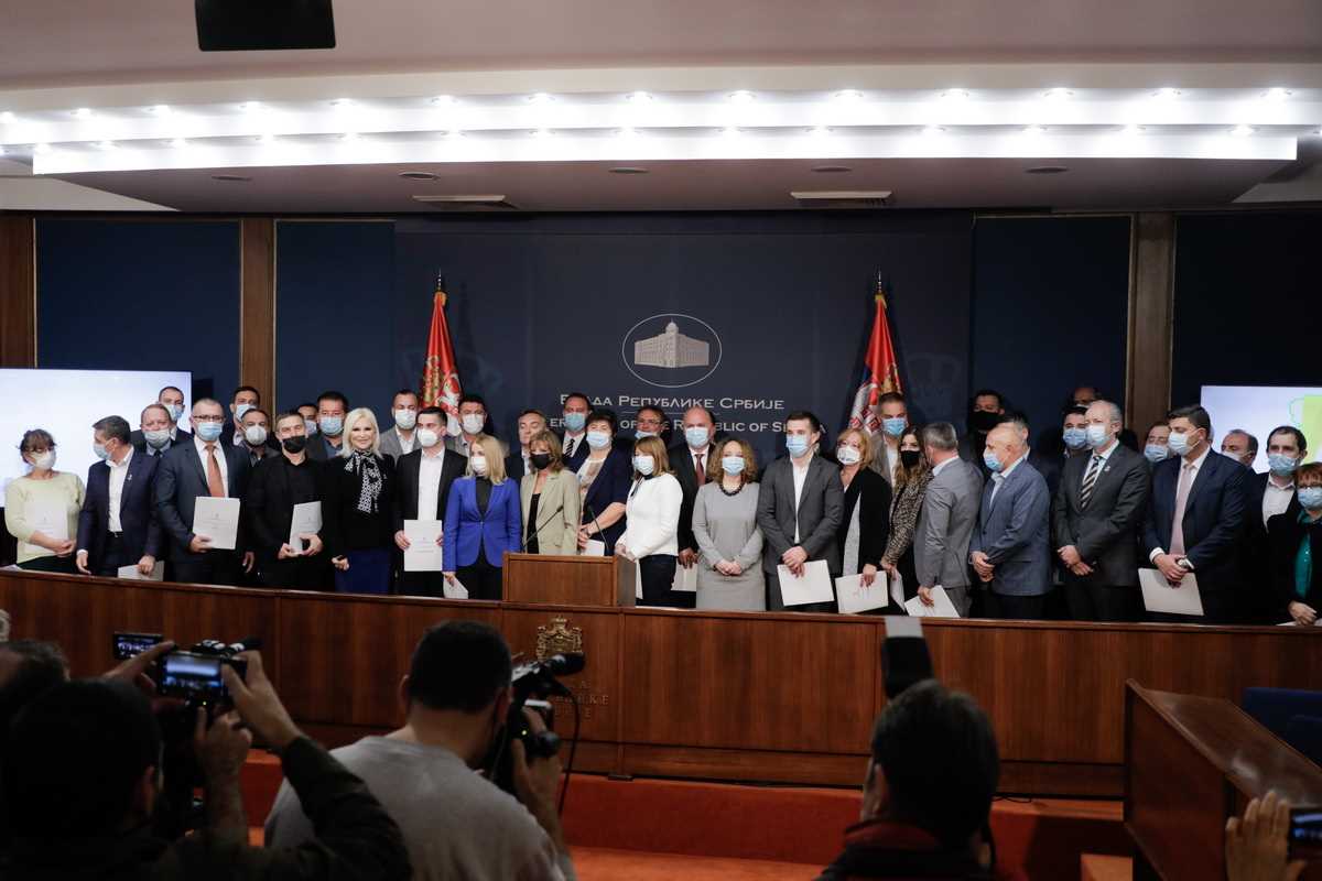 Potpredsednica Vlade i ministarka rudarstva i energetike, prof. dr Zorana Mihajlović, uručila je ugovore o sufinansiranju programa ugradnje solarnih panela za domaćinstva gradonačelnicima i predsednicima 37 gradova i opština.