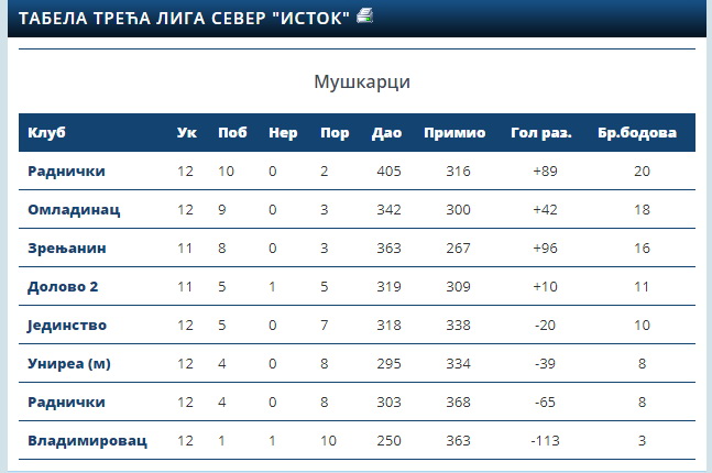 Narednog vikenda RK Radnički igra kod kuće u subotu u 19 h protiv RK Dolovo 2, dok sledećeg vikenda gostuju RK Omladinac, drugoplasiranoj ekipi u ligi. Uglavnom, predstoji nam zanimljiva trka do poslednjeg kola i to ne samo za prvo mesto već i za drugo, koje omogućava eventualni plasman u viši rang ili baraž, zavisno od „svevišnjih“ odluka Rukometnog saveza.