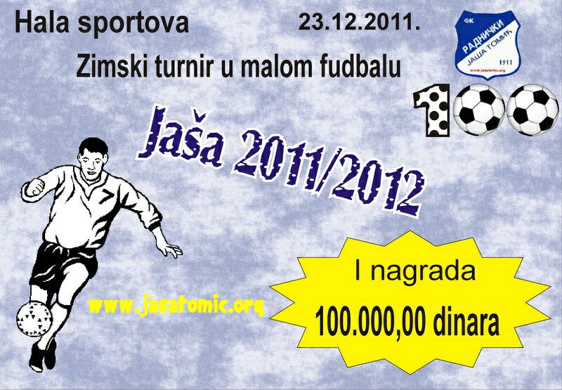 Tradicionalni zimski turnir u malom fudbalu “JAŠA 2011/2012” počinje u petak, 23 decembra 2011. godine. Ove godine je turnir u znaku obeležavanja sto godina postojanja fudbalskog kluba Radnički, te je i prva nagrada od 100 hiljada dinara u duhu jubileja.