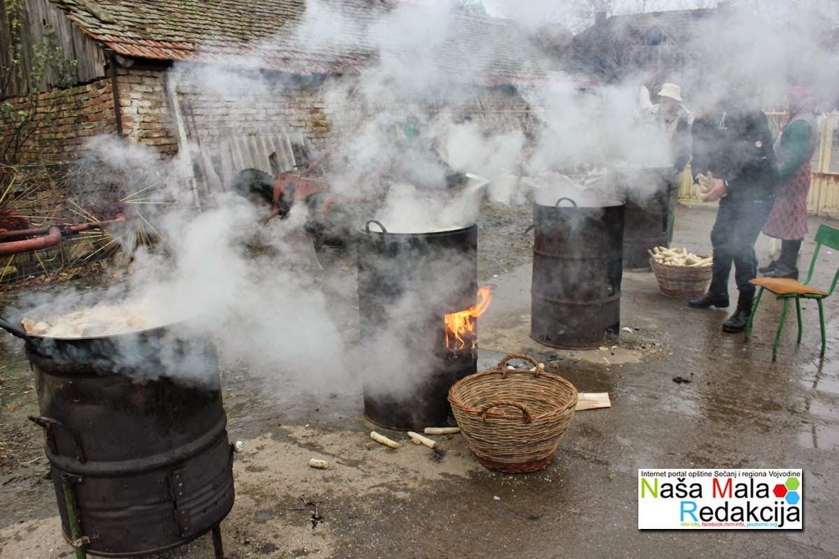 Vreme, ono bejaše, i jasno naznačene promene u prirodi koja nas zaokuplja i prati. Eto, u tom vremenu, novembra meseca, nekog davnog „ljeta gospodnjega“, započinjao bi prvi sneg, prvim pahuljama bi se poigravala banatska košava, kovitlajući ih po zadimljenim krovovima, i krošnjama ogolelog drveća. I sve je mirisalo na zimu, rakija ispečena, vino pretočeno, tegle džemova i kompota dremaju u špajzu, miris dunja se širio u gostinskoj sobi, i još se samo sa nestrpljenjem čekao i pripremao taj nesvakidašnji i očekivani događaj, koji je najviše veselio srca onih najmlađih i najradoznalijih, svinjokolj, i sva ta akcija što je nosio u sebi. Domaćin bi sa prvim pahuljama zagledao svoje tovljenike, već dobro otežale, pripremao se kazan i sav potreban inventar, dogovor sa komšijama i kumovima o rasporedu … i eto, dođe i taj dan. Svi su u žurbi, rano ustali, uzbuđeni, najviše deca, očekujući vruće vodenjake, koje će naduvati i jurcati za njima po avliji dok ih ne bi zaustavio kakav trn ili zarđali ekser, koji se baš tu našao da im prekine igru. Cičanje mangulica je najavljivalo dugo očekivanu radnju. Deda je vredno ložio ispod kazana, grejući pogurena leđa, mlađarija je prinosila neophodan pribor, i odjednom, na avliji bi se razgorela vatra, počinje prljenje, struganje četkama, pa i crepom, da se žutilo sve, kao limun. Glavni majstor bi brzo rasklatio i isekao na komade ugojenog „mangulana“, delio zadatke pomagačima. Nazdravljalo bi se vrućom rakijom za sretan rad, pa da i dogodine domaćin užiri još veće, da godina bude berićetna i da čeljad budu zdrava i na okupu. Zbijale su se i razne šale, neke su ostale i upamćene, o onom veselom domaćinu što je prekorevao ženu za tanka creva za kobasicu rekavši „ti da si neka domaćica još juče bi očistila i oprala creva, da majstor ne čeka“. Sve veselo, smeh na sve strane, ne žuri se, ima se kade, svi grickaju mirišljavu, oprljenu kožuru, sada će i fruštuk, domaćica zove da se malo prihvate sveže džigerice, zarumenjenog grojnika, kiselog kupusa, mladog vina, tek što je pretočeno … Posao se nastavljao, iz bakrača se širio miris barevine, sve je spremno za džigernjaču i švarglu, krvavica se već hladi okačena, i sve pokreće čula, i ukusa i mirisa, prosto mami, pa i vino posle toga bolje pristaje. Mnogo ruku, pa i posao odmiče, šale i dosetke ispunile avliju, krenuo je i sneg, pahulje se neprestano igraju sa iskrama, koje iskaču ispod kazana, boreći se sa nemirnim, vragolastim pahuljama, bliži se i veče, kao štapovi „izlaze“ kobasice, koje domaćin slaže u slamsku korpu. Donosi se novi krčag vina, polako se sve utišava i pahulje, kao da su se izmorile od igre sa iskrama, odlaze na večernji počinak. Vredna domaćica sa komšinicama priprema večeru, obavezna kisela čorba od „špic“ rebara, valja i sveža kobasica da se proba, krmenadle, rumene i sočne, baren krompir, salata iz turšije, pa šta ćeš više? Naravno, na kraju čuveni salenjaci, da se zasladi. Okupljene komšije i kumovi oko trpeze, kum doveo muziku da se spomene mladalačkih dana i bekrijanja. Piju se hladni špriceri, pršte bećarci, natpevavanje, nazdravljanje, hvali se umeće majstora, deda zabacio šešir, rumen od vina, naručuje za svoju životnu saputnicu „Ajde Kato, ajde zlato…“. „Ta sada mi to pevaš , a kada sam bila mlada, hajd u njivu i motiku u šake …“, smeh se ori, čak se i mesec odnekud pojavio i svojim zracima razastro zadimnjenu kujnu, da i on proviri, i vidi ovo, bezbrižno društvo. U kasne sate svi razgaljeni, omamljeni, odlaze u hladnu, zimsku noć, ta sutra ih kod Sovre čeka veliki posao, a spremio je i bačvu sa prošlogodišnjim vinom i gajde, pa da ih malo razveseli i vrati u ono njino vreme, kada su zajedno momkovali, i bećarili se po varoškim bircuzima i kafanama, za vreme zimskih večeri il crkvene slave, a o svadbama i da ne pričam, ta puna je vreća priča i uspomena, al šta to vredi sada. Lepo se živi danas, ne kažem da nije, al nekako bez boje i mirisa, kao oni plastični vašarski cvetovi, lepo izgledaju, al ne mirišu. Moje društvo se odselilo tamo, preko mosta i divane o onim vremenima, a ja ćutim čekam svoj red, čekam taj dan, da im se pridružim. Eto, opet je novembar, hladno, snega nema, ja sedim ispred letnje kujne, pušim lulu, snajka kaže da joj ne dimim zavese, pričam sa kokoškama, ko za stare još mari? Skiče svinje, samo sada neke bele, kažu rasne, nije da nije, dođe majstor sa pomoćnikom, donese plinsku bocu, alat, i sve bi gotovo do podneva. Nema graje i vruće rakije, ni veselih snajki prekrivenih malenim pahuljama, ne čuje se cika dece, jurnjava za vodenjakom, sada svi tuve u te telefone, kažu da „kuliraju“, možda se tako razgovaru, nekako bledi, mrzovoljni, ni nalik na negdašnju dečurliju. Kažu, deda ne razumeš, da kažem pravo, ni ne trudim se … Gledam u oblačno nebo, snega još nema, samo se vrana glasne iznad Jera, ta ćutnja mi dobuje u glavi, fali mi vreme ono, ti naši lepi običaji, i avlija puna kumova i prijatelja … Rominja sitna kišica i kvasi sedu bradu, kvasi uspomene što su se nagomilale ko žuti kukuruz u kotarci, preleću kao jata divljih gusaka, a ja čekam prvi sneg da odmotam ono vreme … da zamirišu čvarci i vruća rakija, da uzmem u ruke hrskave salenjake i da vam ih pošaljem po banatskoj košavi, dragi moji varošani, da za trenutak odškrinete vrata detinjstva, da vas sve ovo podseti na ono naše … što nekad bejaše …