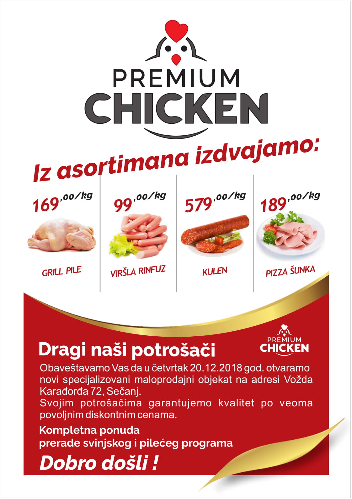Posetite prodavnicu Premium Chicken u Sečnju i lično se uverite u kvalitet i izuzetno niske cene!