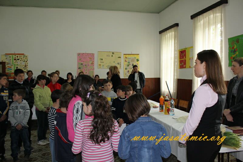Goste iz Srpske banke na čelu sa direktoricom Bratislavom Ristić dočekali su učenici trećeg razreda, njihovi roditelji, Doder Jadranka direktorica škole, Đurić Ljiljana učiteljica a ispred lokalne samouprave Savović Biljana predsednica Skupštine opštine Sečanj i kandidat za republičkog poslanika i Vukoje Darko pomoćnik predsednika i kandidat za pokrajinskog odbornika.