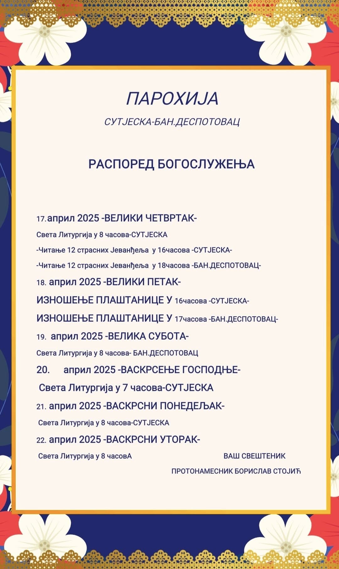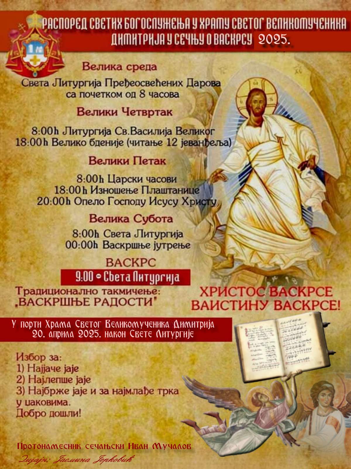 Početna Vesti Raspored bogosluženja za Vaskrs